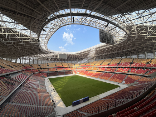 重慶龍興專業(yè)足球場(項目管理+工程監(jiān)理+設計咨詢) 該工程總建筑面積約172000平方米,地下一層,地上五層,固定座位數(shù)不低于60000座,場地標準為承辦國際性比賽的標準足球場。